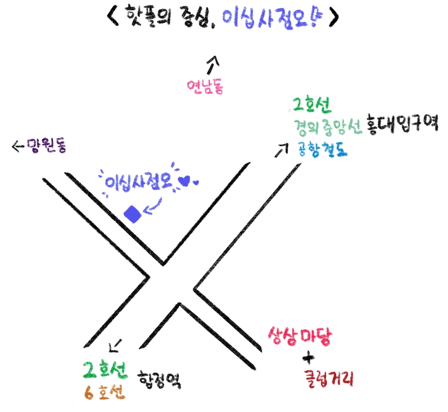 홍대, 합정, 상수, 연남, 망원 사이에 있는 핫.플.레.이.스.