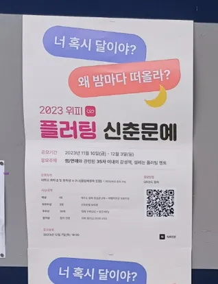 대학생들의 참여를 이끌어내려면 트렌디하고 공감되는 소재가 있어야 해요. MBTI처럼 누구나 과몰입할 수 있는 소재말이에요. 사랑은 흔한 소재지만 그만큼 진부하고 무거워요. 그래서 썸, 삼귀다, 그린라이트 같은 단어가 유행한거죠. 그 중에서 저희는 ‘플러팅’이라는 단어에 주목했어요. 플러팅 장인, 유죄 인간처럼 사랑을 불러 일으키는 것에 대해 반응도가 높은 타이밍이었고, 특히 대학생들이 이 주제에 가장 재미를 느낀다고 느꼈거든요. 신춘문예라는 큰 틀은 유지하되, 플러팅이라는 워딩으로 완전히 영한 컨셉으로 바뀌었죠.