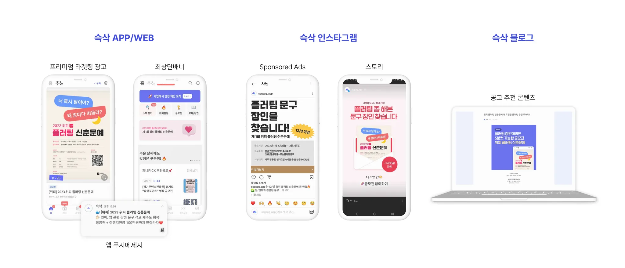 그 어느 때보다 브랜딩이 중요해지고 있는 요즘, 고객이 브랜드를 경험하도록 유도하는 참여 마케팅에 새롭게 뛰어드는 기업이 많아졌어요. 참여 마케팅은 비교적 적은 비용으로 타겟 고객의 행동을 이끌어낼 수 있는 효과적인 마케팅 방법이지만, 기획에 따라 효과가 천차만별인데요. 위피의 플러팅 신춘문예는 수많은 공모전 사이에서 모집 KPI를 빠르게 초과달성하며 흥행에 성공했어요. 이번 공모전에는 슥삭도 기획부터 홍보까지 참여했어요. 자세한 이야기를 슥삭 담당자와 나눠보았습니다.