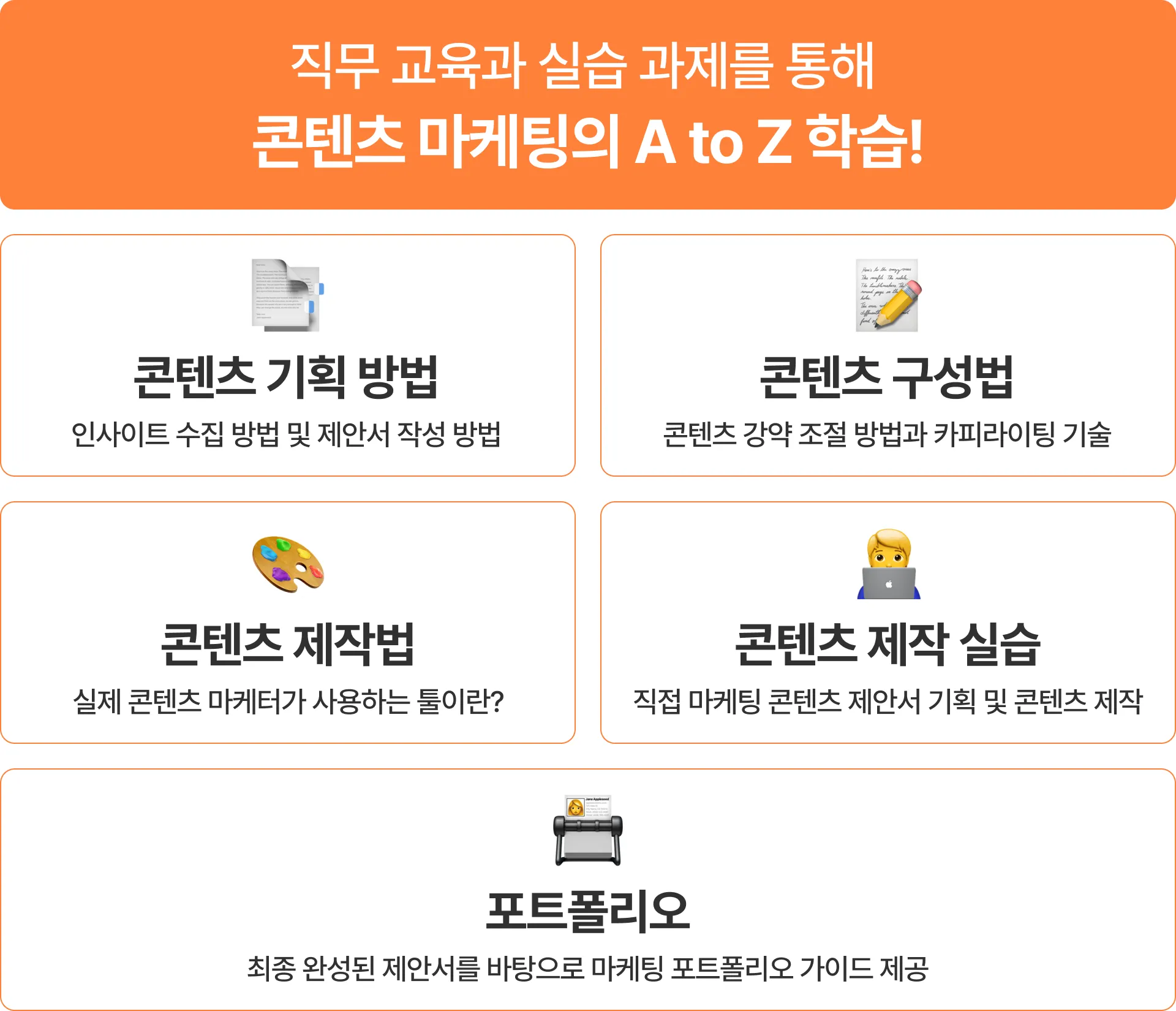 콘텐츠 기획은 어떻게 하는지, 어떤 툴을 사용해야하는지, 어떤 자격증이 좋은지, 그리고 포트폴리오는 어떻게 만들어야하는지까지!