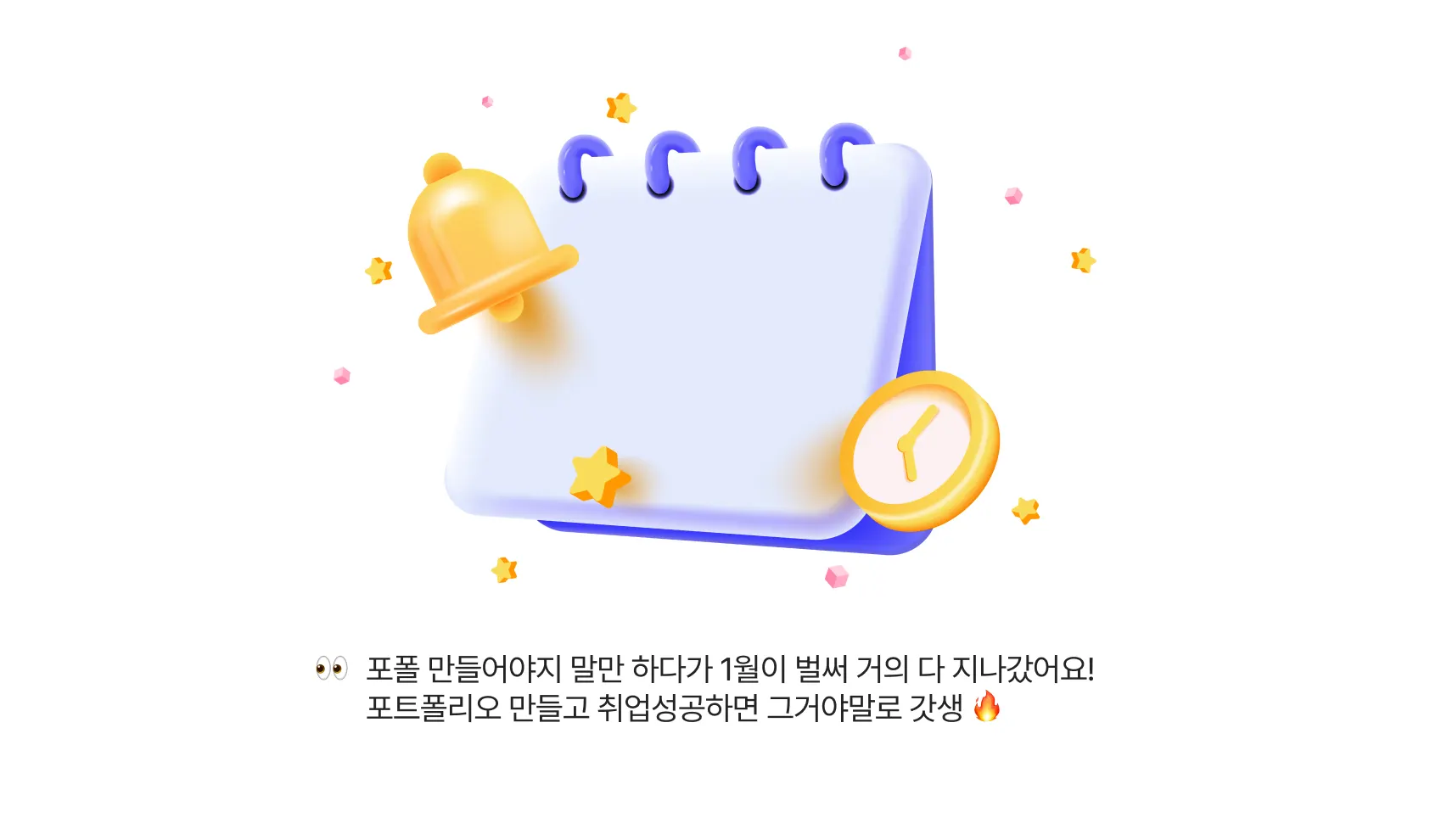1월 한 달 포트폴리오를 완성하고, 2월에는 취업할 수 있도록 기간을 구성했어요!
